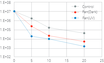 Coliform | ISO 16000-36:2018 | 99.8% removed | 1 hour | 1.0 x 10⁴ | < 10 | 99.9 |