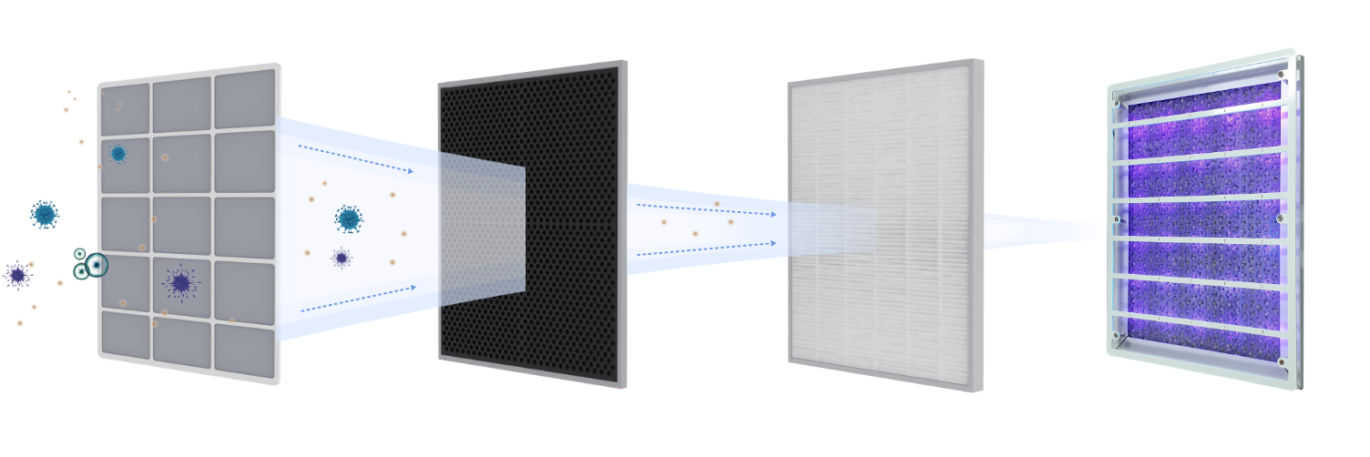 The purifier filters fine particles of the size of PM2.5 / PM0.3~0.5 such as pollen.