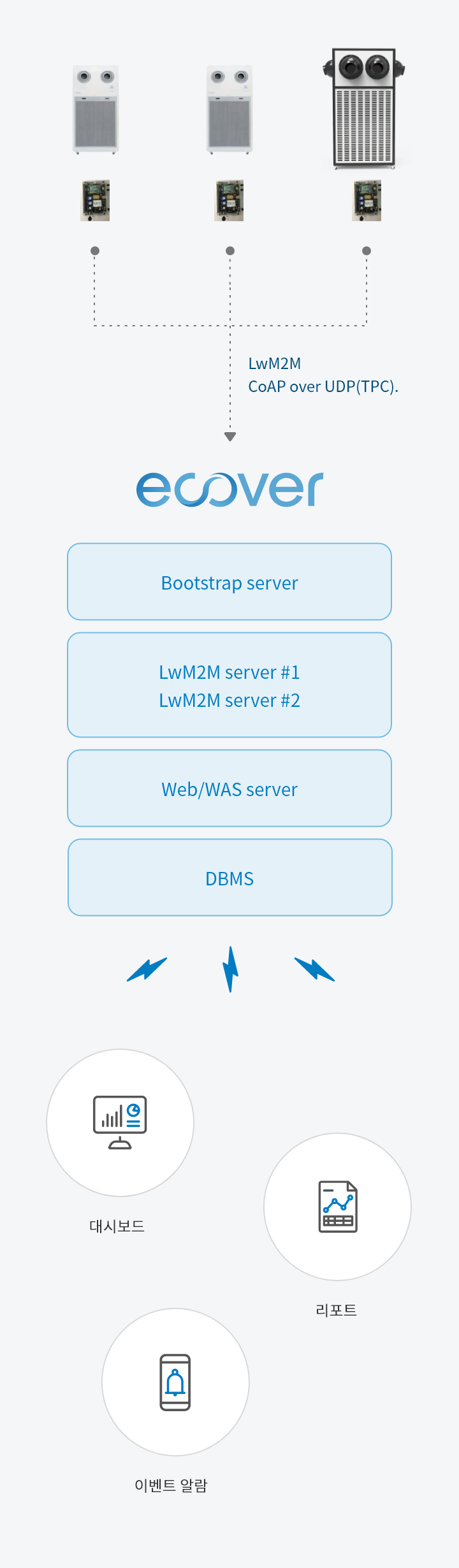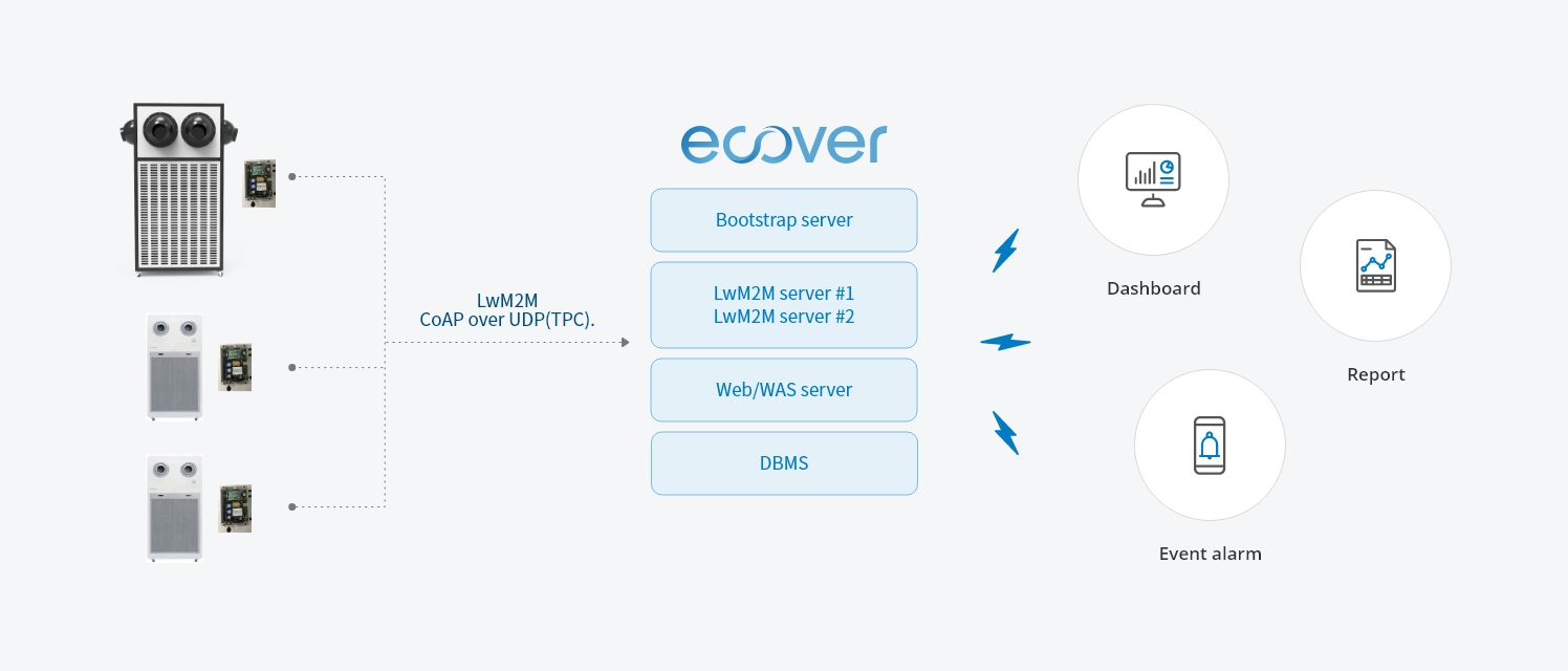 ECOVER gives appropriate monitoring or management features for various types of devices by utilizing the IoT solution. And it is an integrated system to monitor the composition of multiple servers and performance failure.